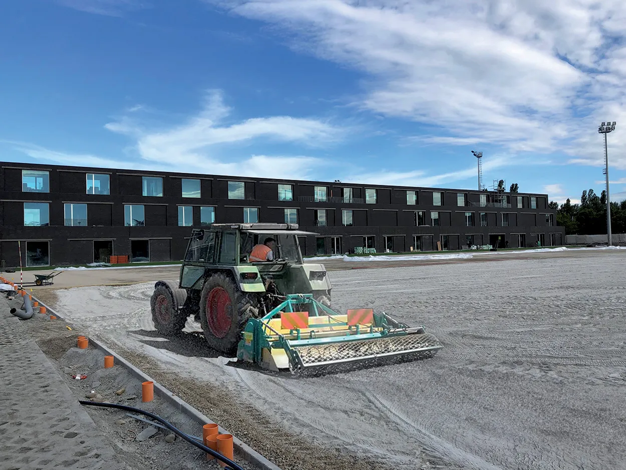 Per il drenaggio dei campi da gioco sono stati scelti lo stabilizzante MAPESOIL 100 e il legante idraulico MAPESOIL VD. Per i sottofondi dei campi di calcio sono stati utilizzati anche inerti e maltaVISTA di Vaga (marchio del Gruppo Mapei).