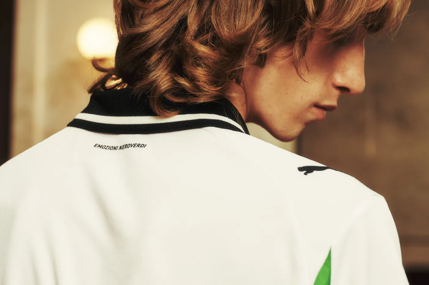 L’intera maglia è declinata nella colorway Puma White, sobria ma sofisticata, con profili laterali in Fast Green, mentre lo stemma del club in Fast Green aggiunge un tocco di contrasto visivo, esaltando la pulizia del design e conferendo alla divisa un carattere forte e riconoscibile.