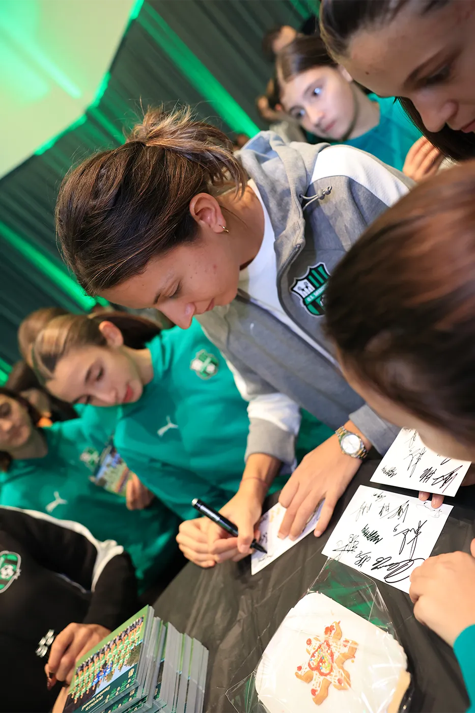 Le ragazze hanno potuto scoprire da vicino alcuni spazi esclusivi del Mapei Stadium e prendere parte alle attività pensate per loro per celebrare insieme il periodo natalizio: laboratori creativi, trucca bimbi e un angolo goloso con dolcetti e cioccolata calda. La festa è proseguita tra giochi, quiz e mini sfide di gruppo ispirate alla storia del Sassuolo, creando un clima di entusiasmo e di appartenenza ai colori neroverdi.