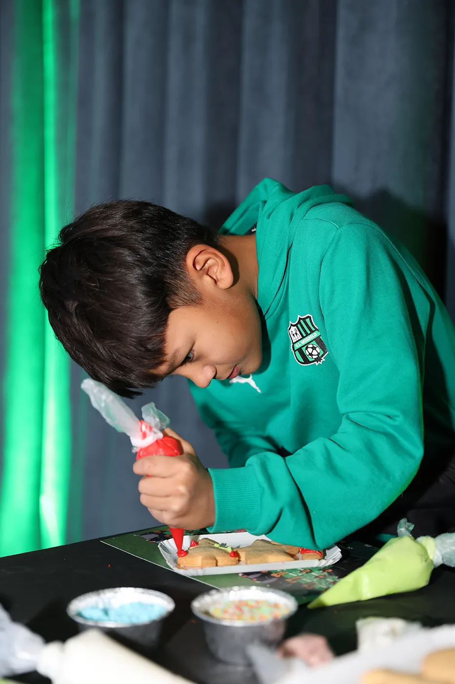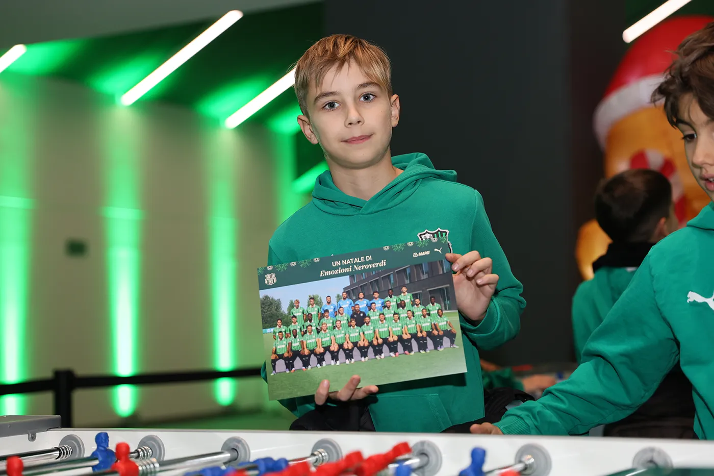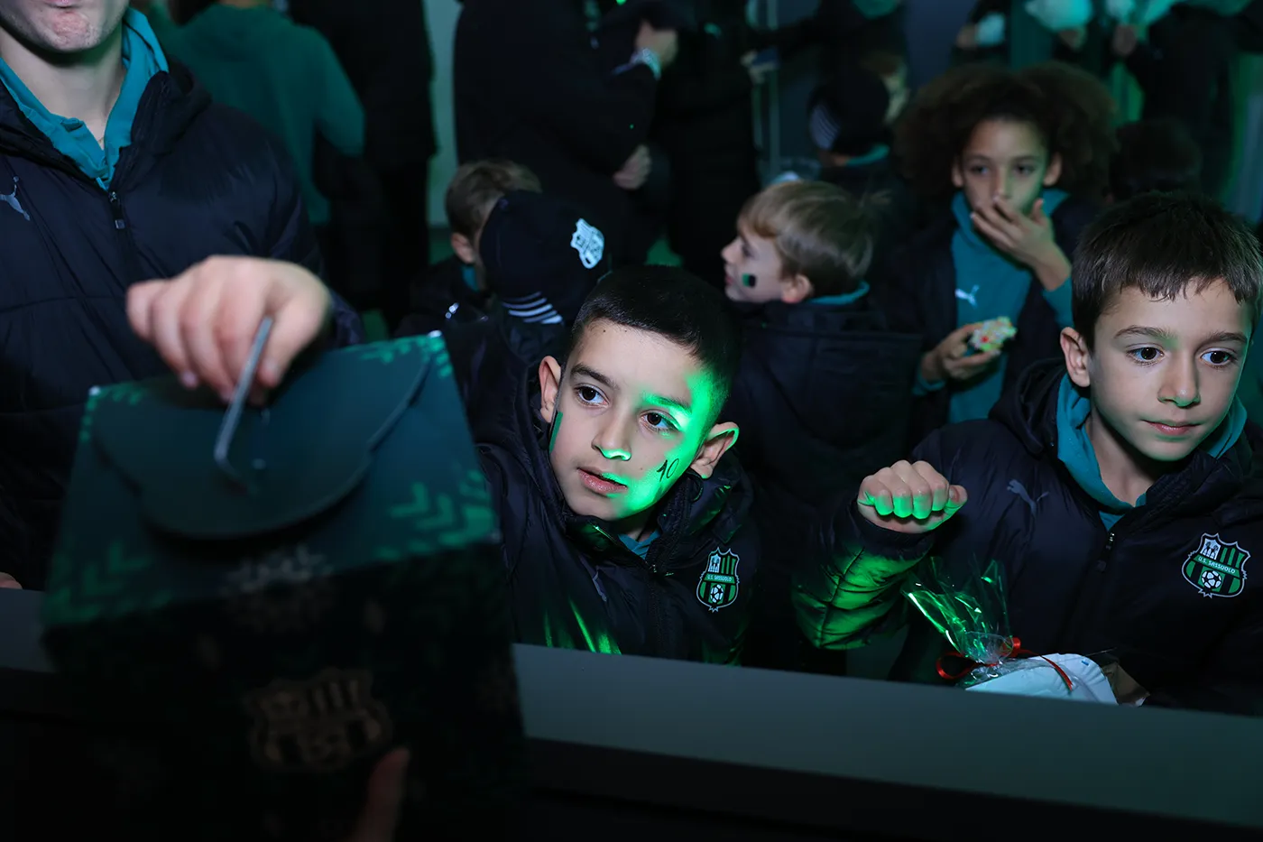 Nelle zone più esclusive dell’impianto, i giovani calciatori hanno potuto avere un primo impatto con uno stadio di livello internazionale, transitando per gli spogliatoi e il tunnel, fino a giungere a bordocampo. Aperti ai ragazzi e agli staff anche a sala eventi, che accompagnava con un buffet la stazione di trucca-bimbi e laboratori a tema natalizio, e i piani superiori del Mapei Stadium, dove la sala stampa attendeva i neroverdi con giochi e quiz a tema Sassuolo Calcio.