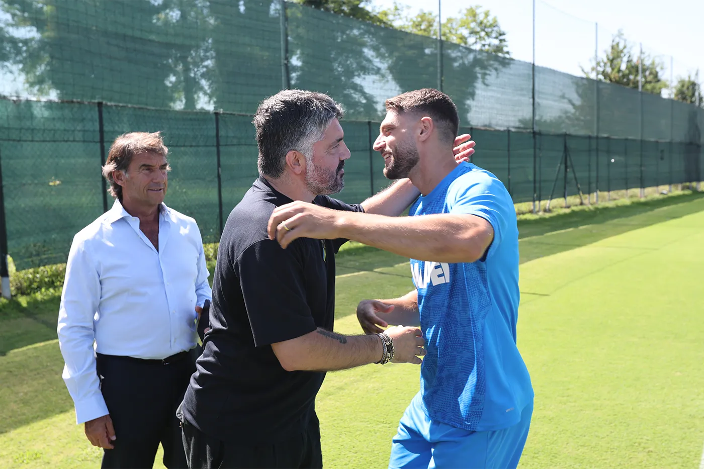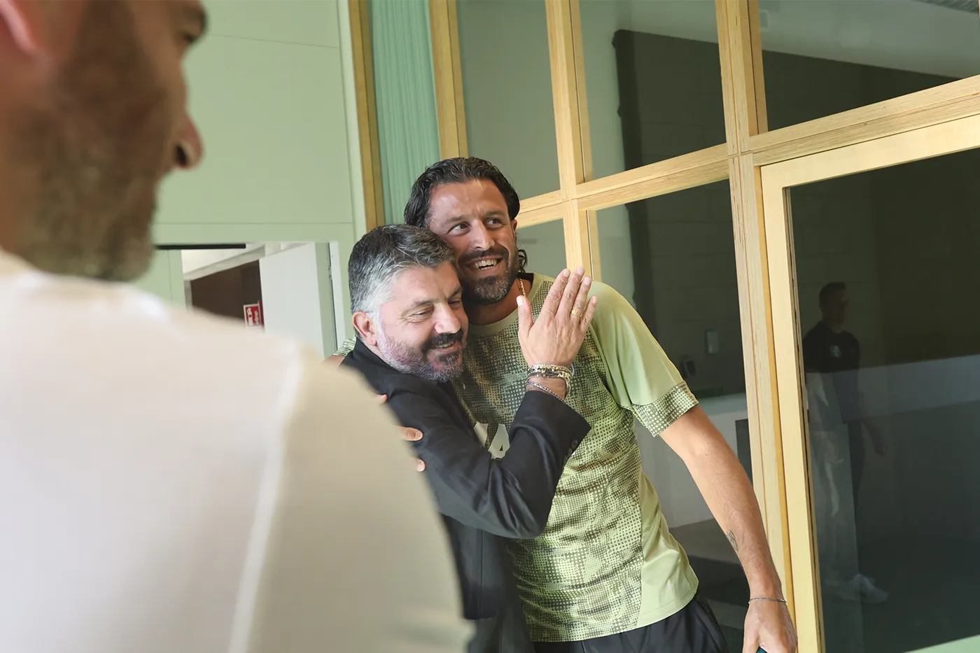 Gattuso, che ha ricevuto in omaggio la nuova maglia Home del Sassuolo, ha inoltre assistito alla sessione di allenamento e ha incontrato Berardi e compagni prima della seduta.