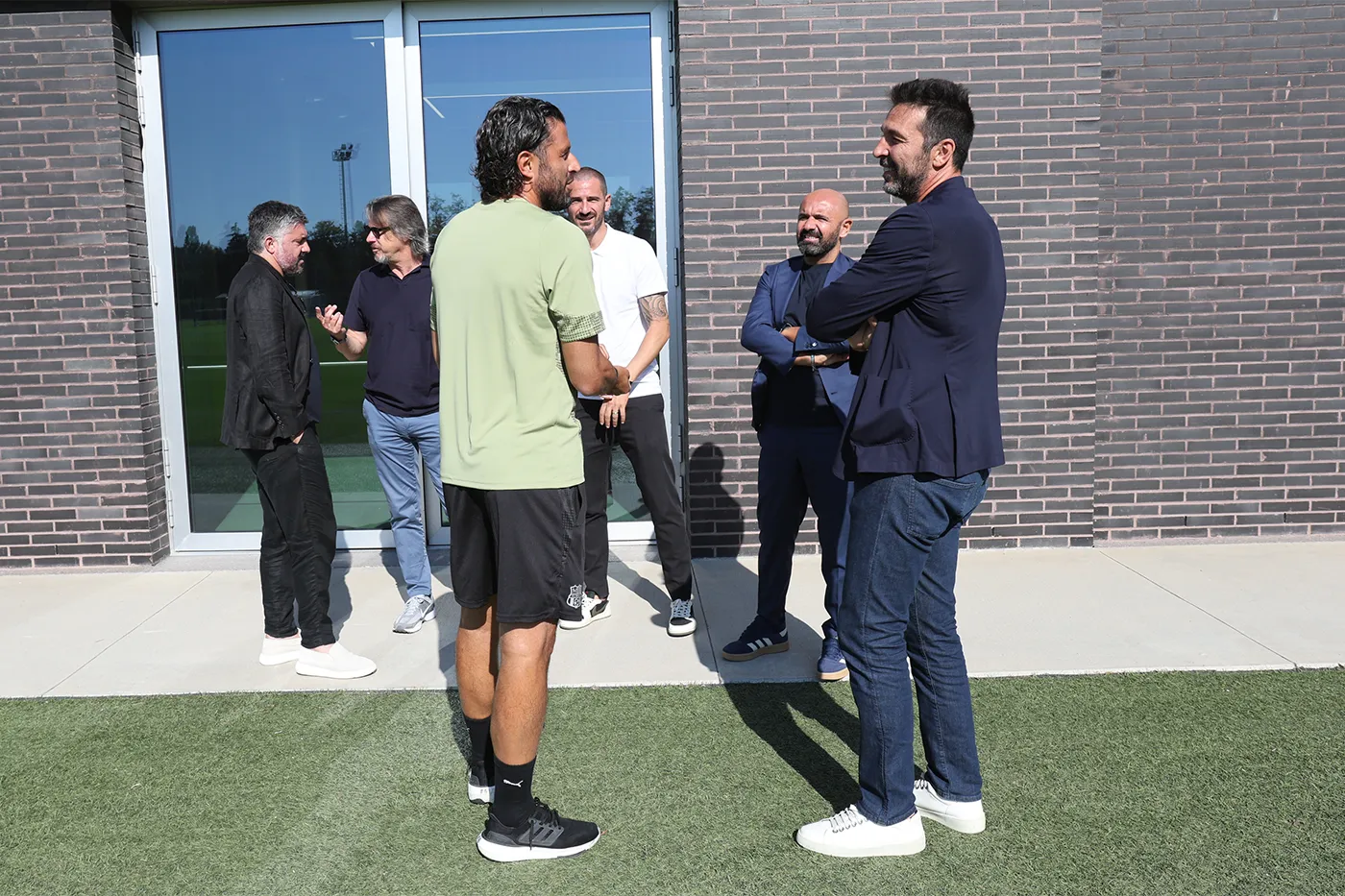 Mattinata di incontri speciali al Mapei Football Center in occasione dell’allenamento mattutino del Sassuolo. Il Commissario Tecnico della Nazionale Italiana Gennaro Gattuso ha fatto visita al centro sportivo neroverde, accompagnato da una delegazione azzurra composta dal Capo Delegazione Gianluigi Buffon e dagli assistenti Luigi Riccio e Leonardo Bonucci.