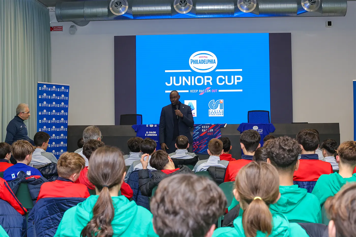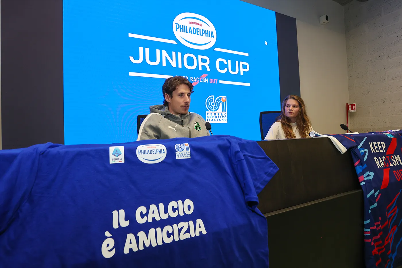 La Philadelphia Junior Cup, giunta quest’anno alla tredicesima edizione, sposa ancora una volta la campagna di sensibilizzazione contro il razzismo e ogni forma di discriminazione “Keep Racism Out”, promossa da Lega Calcio Serie A in collaborazione con l’UNAR, l’Ufficio Nazionale Antidiscriminazioni Razziali della Presidenza del Consiglio dei Ministri. Il rispetto e l’inclusione sono temi centrali del progetto, affrontati durante l’incontro di sensibilizzazione, oltre che dai campioni neroverdi, anche da Alec Invernizzi, Head of Operations dell’U.S. Sassuolo Calcio, Oumar Daffe, dell’Ufficio Corporate Social Responsibility di Lega Calcio Serie A, Raffaele Candini, Presidente del CSI Emilia Romagna, Alessandro Munarini, Presidente del CSI Reggio Emilia, Raffaele Della Casa, Vicepresidente del CSI Modena, e dall’educatore e allenatore Jeffrey Owusu Boateng.