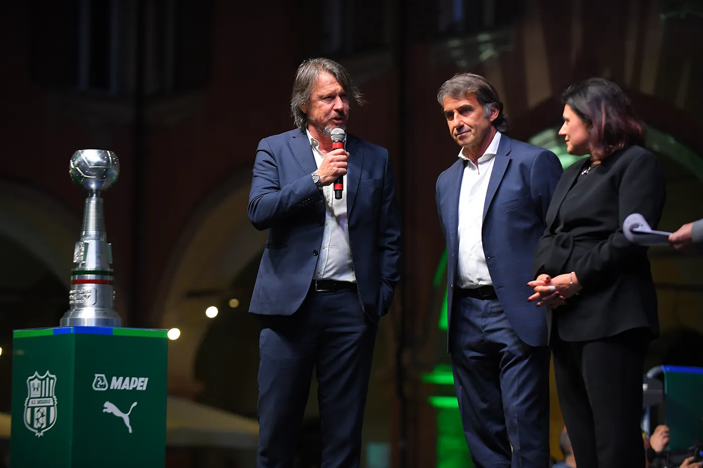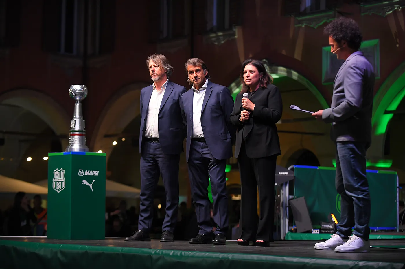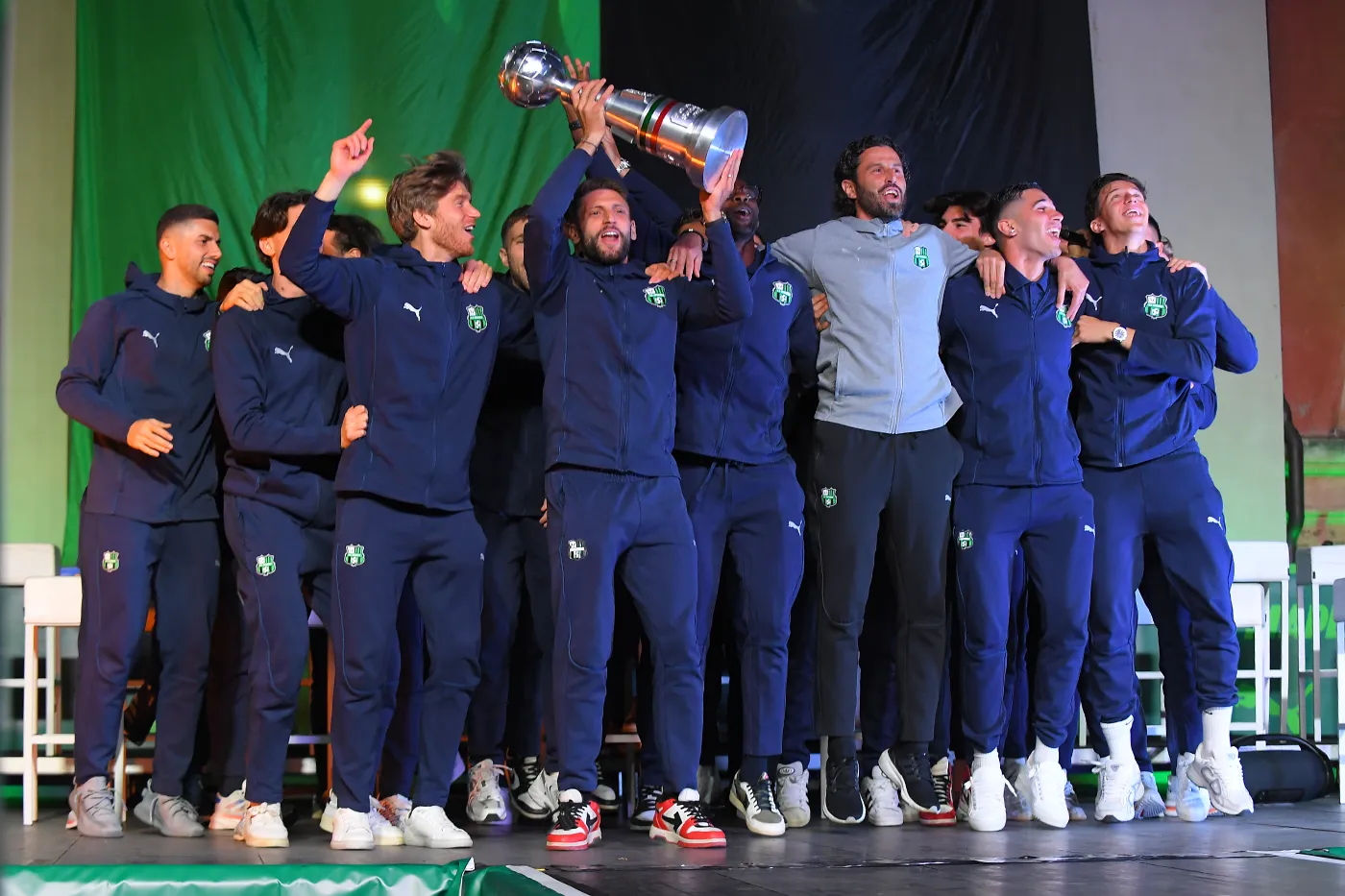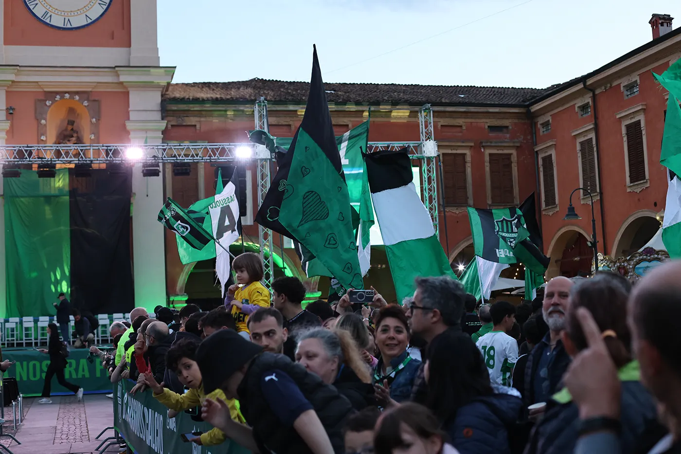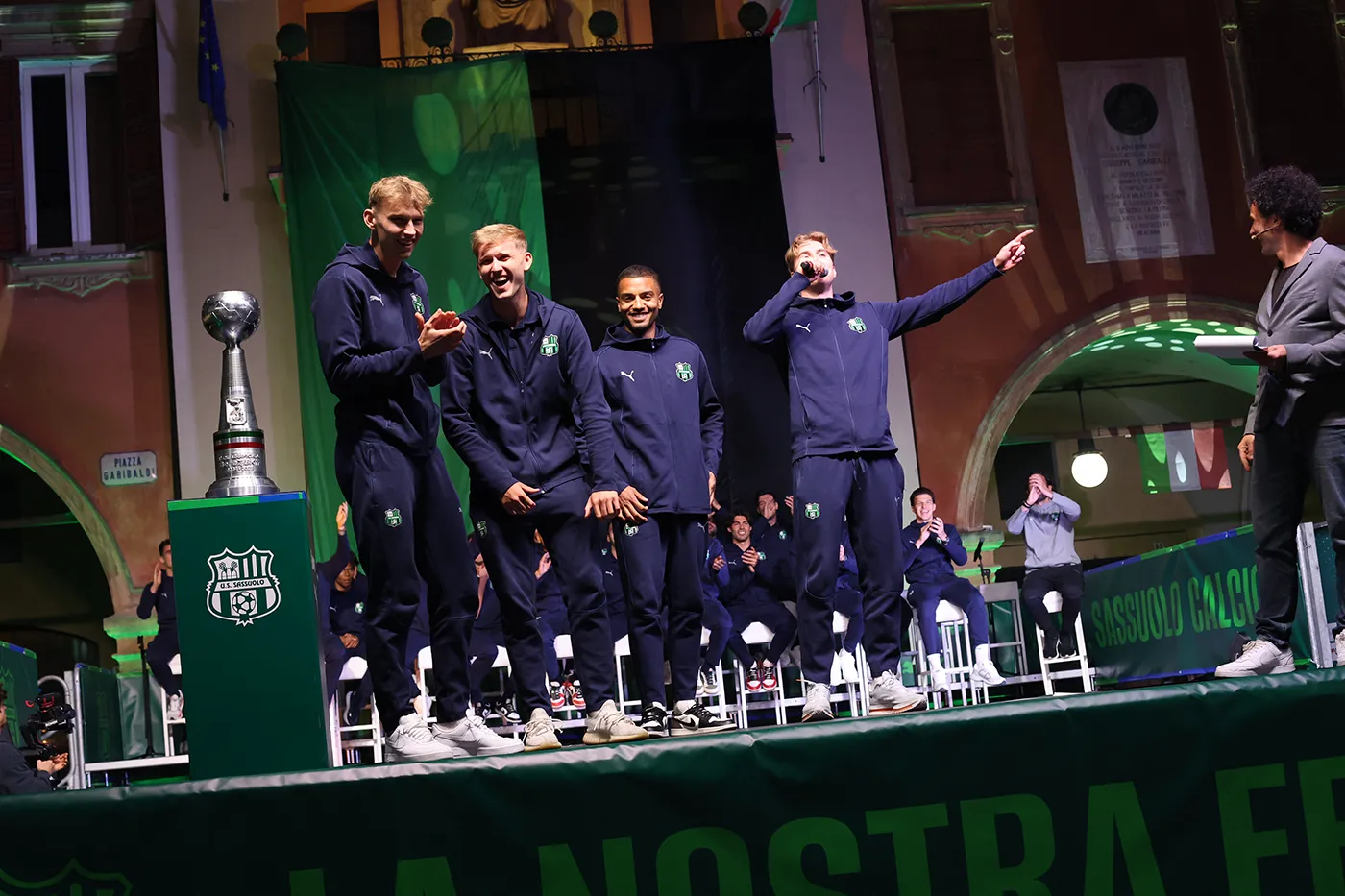 Si è tenuta questa sera, presso Piazza Garibaldi a Sassuolo, la festa per la promozione in Serie A del club neroverde. Dopo la consueta celebrazione dell’alzata di coppa, tenutasi venerdì 9 maggio al Mapei Stadium al termine di Sassuolo-Catanzaro, gli uomini di Grosso hanno ricevuto l’abbraccio dei tifosi in centro città.