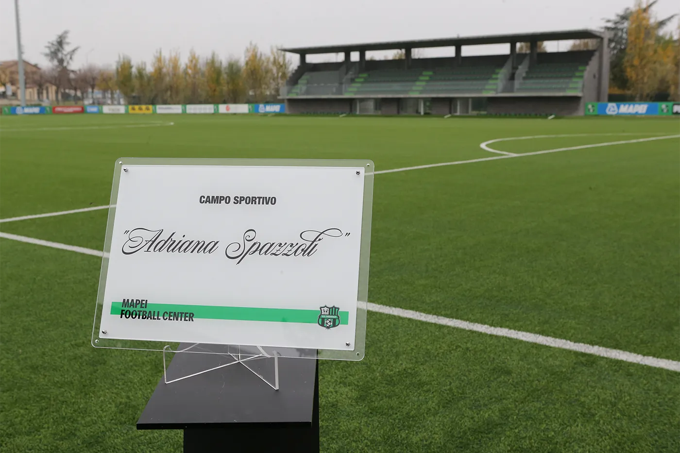 Nel novembre 2020, è stato reso omaggio a due figure fondamentali nella storia del Sassuolo Calcio con un gesto carico di significato: la strada di accesso al Mapei Football Center è stata intitolata a Giorgio Squinzi, mentre il campo in erba sintetica porta ora il nome di Adriana Spazzoli. Un segno concreto per ricordare l’impegno, la visione e la passione con cui entrambi hanno contribuito alla crescita del Sassuolo Calcio e alla costruzione della sua identità, dentro e fuori dal campo.